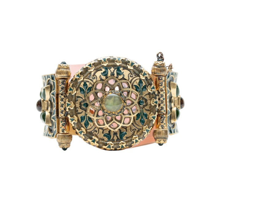 - Inspiration: The design is rooted in the opulent aesthetics of Byzantine art, characterized by its intricate patterns, bold colors, and lavish materials. This bracelet seamlessly combines historical references with modern luxury.