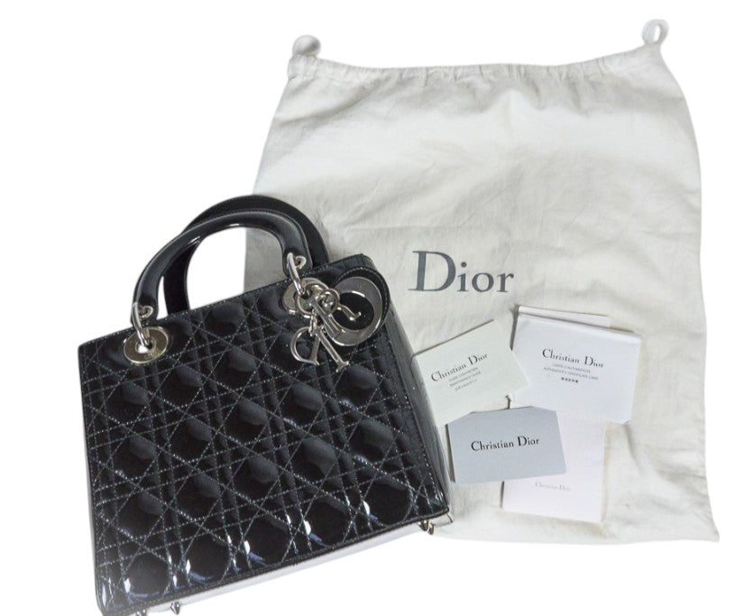 Christian Dior Medium Lady Dior Bag Black Patent Cannage Calfskin Bag