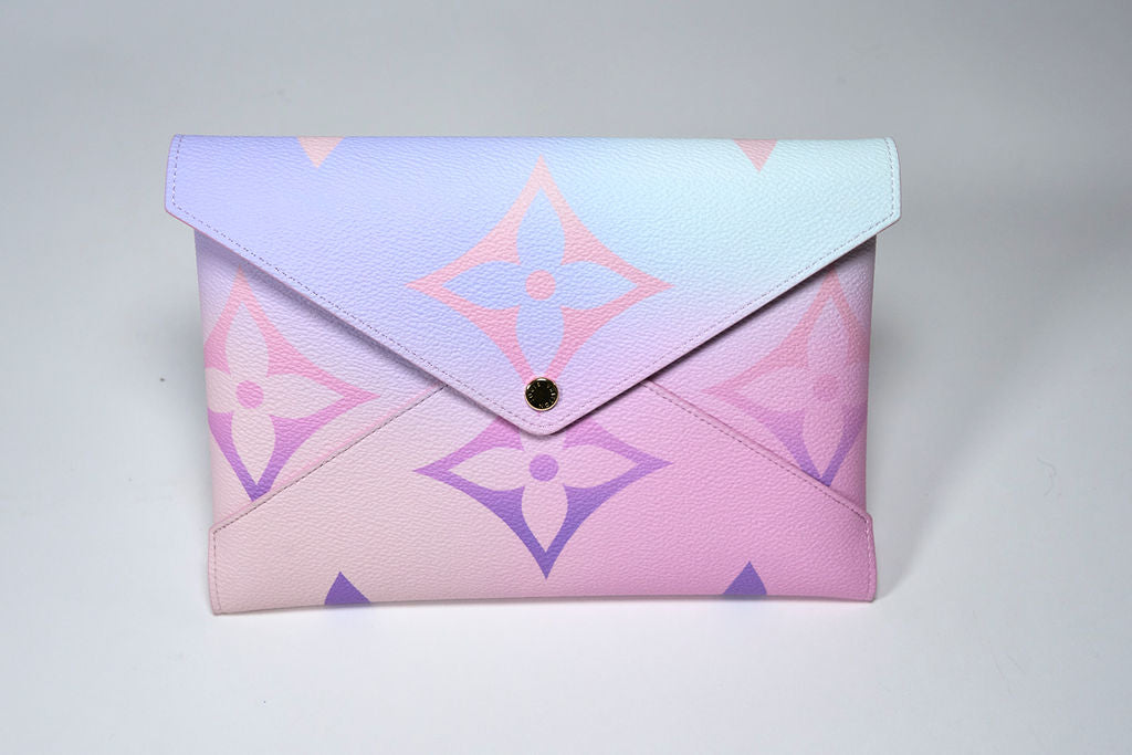 The Louis Vuitton Kirigami Pochette Spring In The City Monogram Giant Canvas GM is an elegant and versatile accessory that perfectly embodies the luxury and artistry of Louis Vuitton. Crafted from the brand’s iconic Monogram Giant canvas, this limited-edition piece is reimagined with a soft gradient color palette inspired by the hues of springtime.